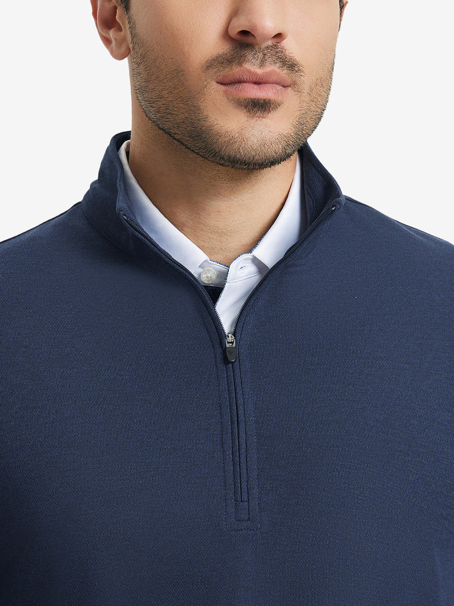 Experimenta la máxima comodidad y estilo con nuestro Sudadera Jacquard Premium con Cremallera de Cuarto. Confeccionada con tela de espiga de alto rendimiento, ofrece tecnología dry fit y protección UPF 50+. Esta sudadera para hombre es ideal para mantenerse abrigado en climas fríos y perfecta para usar en capas en otoño e invierno. El tejido elaborado garantiza resistencia al desgaste y durabilidad, a la vez que mantiene una ligera elasticidad para facilitar el movimiento. Con costuras meticulosas y detalles exquisitos, esta sudadera es una mezcla perfecta de calidad y funcionalidad.