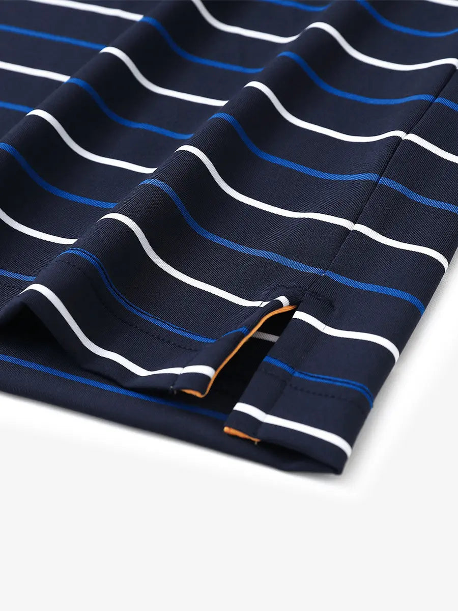 Nuestra camisa de golf para hombre presenta rayas teñidas en hilo y está hecha de material de poliéster-spandex de alta gama, proporcionando suavidad y transpirabilidad. Elimina eficazmente la humedad para mantenerte fresco y seco. Con tejido elástico en 4 direcciones, este polo garantiza una total libertad de movimiento para cualquier golfista. Ideal para el campo o para uso casual.