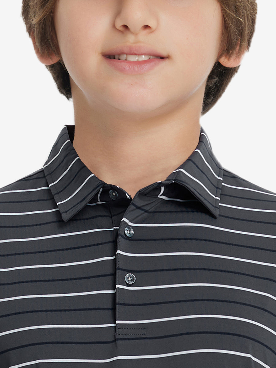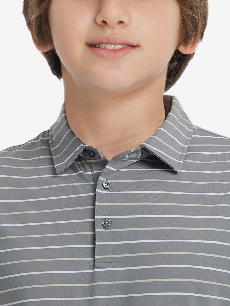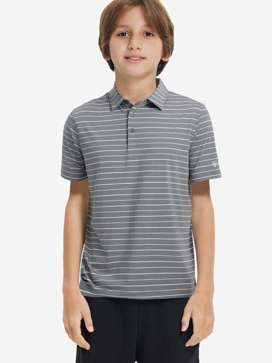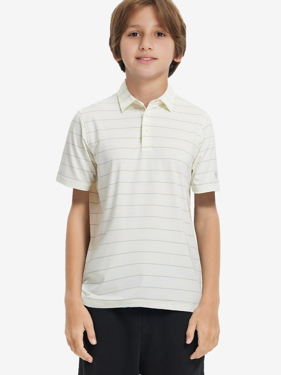 Presentamos nuestras camisas polo a rayas elegantes para niños. Confeccionadas con poliéster y elastano de alta gama, estas camisetas suaves, agradables para la piel y ligeras mantienen a tus pequeños frescos y secos en climas cálidos. Con tejido elástico en 4 direcciones y teñido de primera calidad, esta vibrante camiseta de golf juvenil se mantiene duradera lavado tras lavado, perfecta para niños activos a los que les encanta jugar.