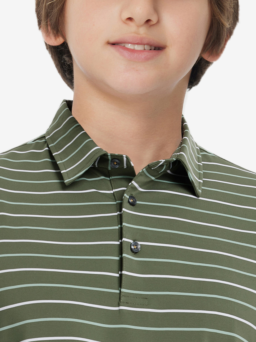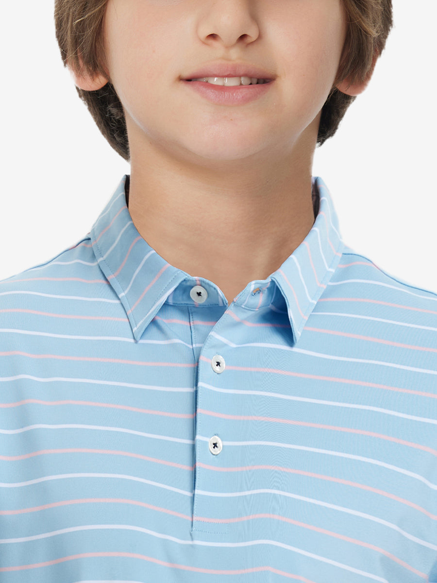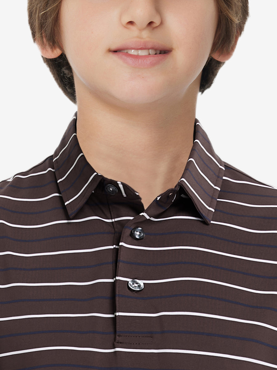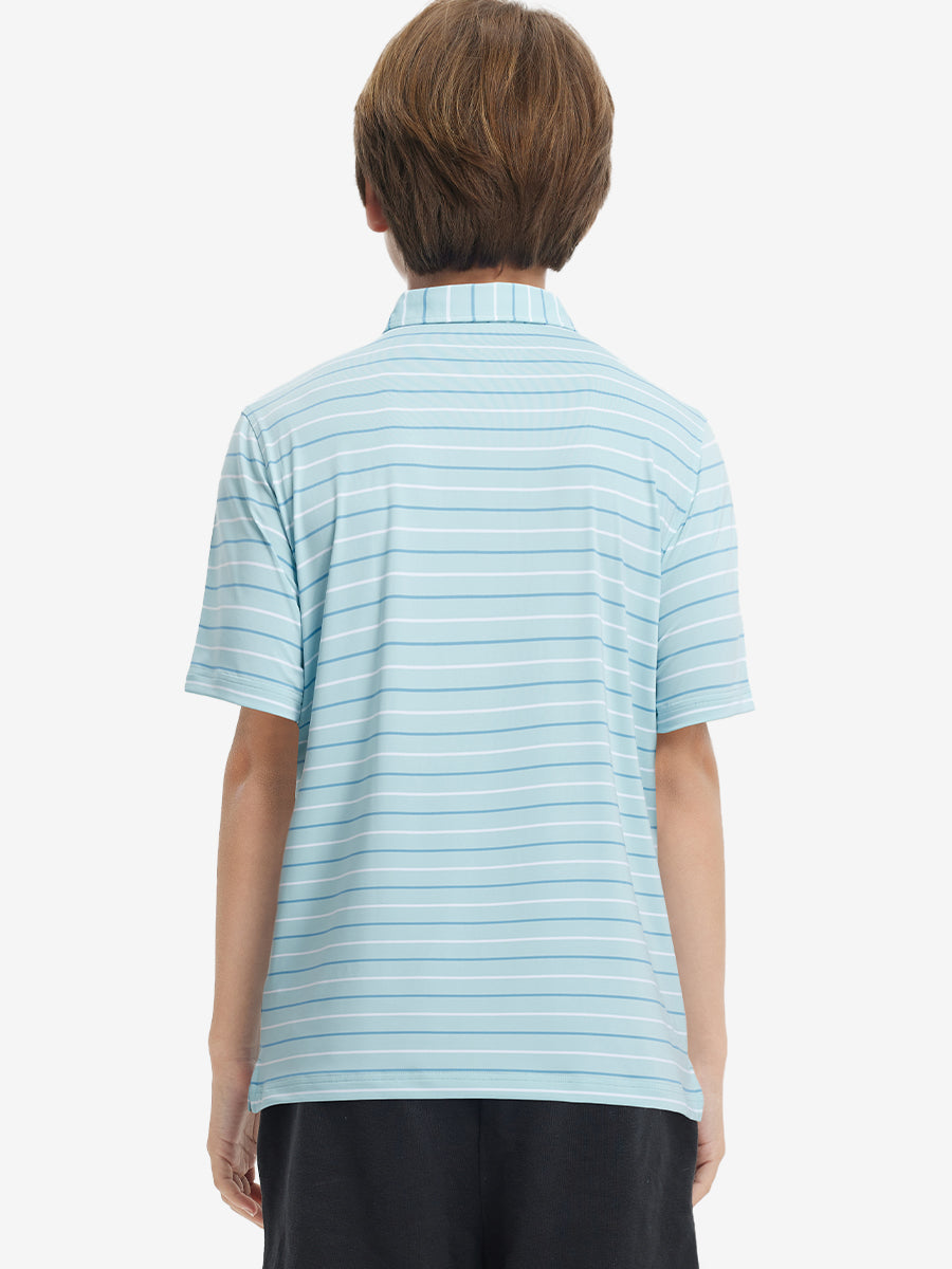Presentamos nuestras camisas polo a rayas elegantes para niños. Confeccionadas con poliéster y elastano de alta gama, estas camisetas suaves, agradables para la piel y ligeras mantienen a tus pequeños frescos y secos en climas cálidos. Con tejido elástico en 4 direcciones y teñido de primera calidad, esta vibrante camiseta de golf juvenil se mantiene duradera lavado tras lavado, perfecta para niños activos a los que les encanta jugar.