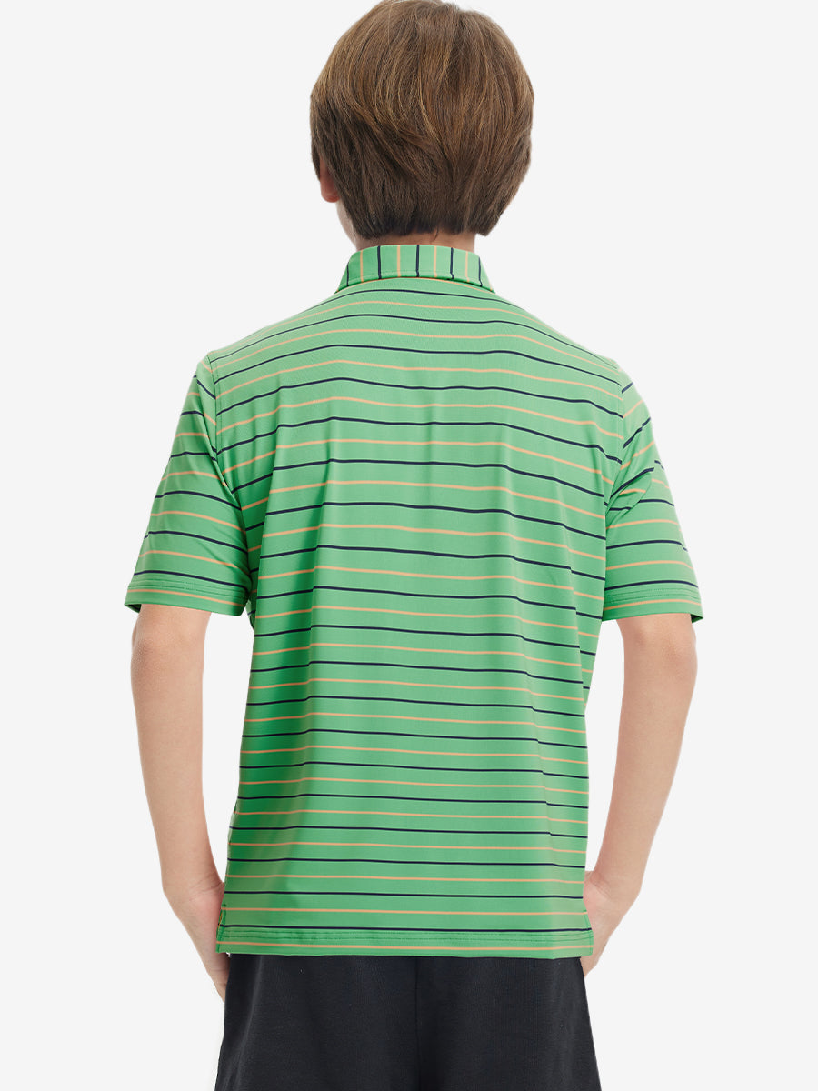 Presentamos nuestros polos a rayas modernos para niños. Hechos de una mezcla de poliéster y elastano de alta calidad, estos polos suaves, agradables para la piel y ligeros mantienen a tus pequeños frescos y secos en climas cálidos. Con tela elástica en 4 direcciones y un teñido de primera calidad, esta vibrante camiseta de golf juvenil se mantiene duradera lavado tras lavado, perfecta para niños activos que aman jugar.