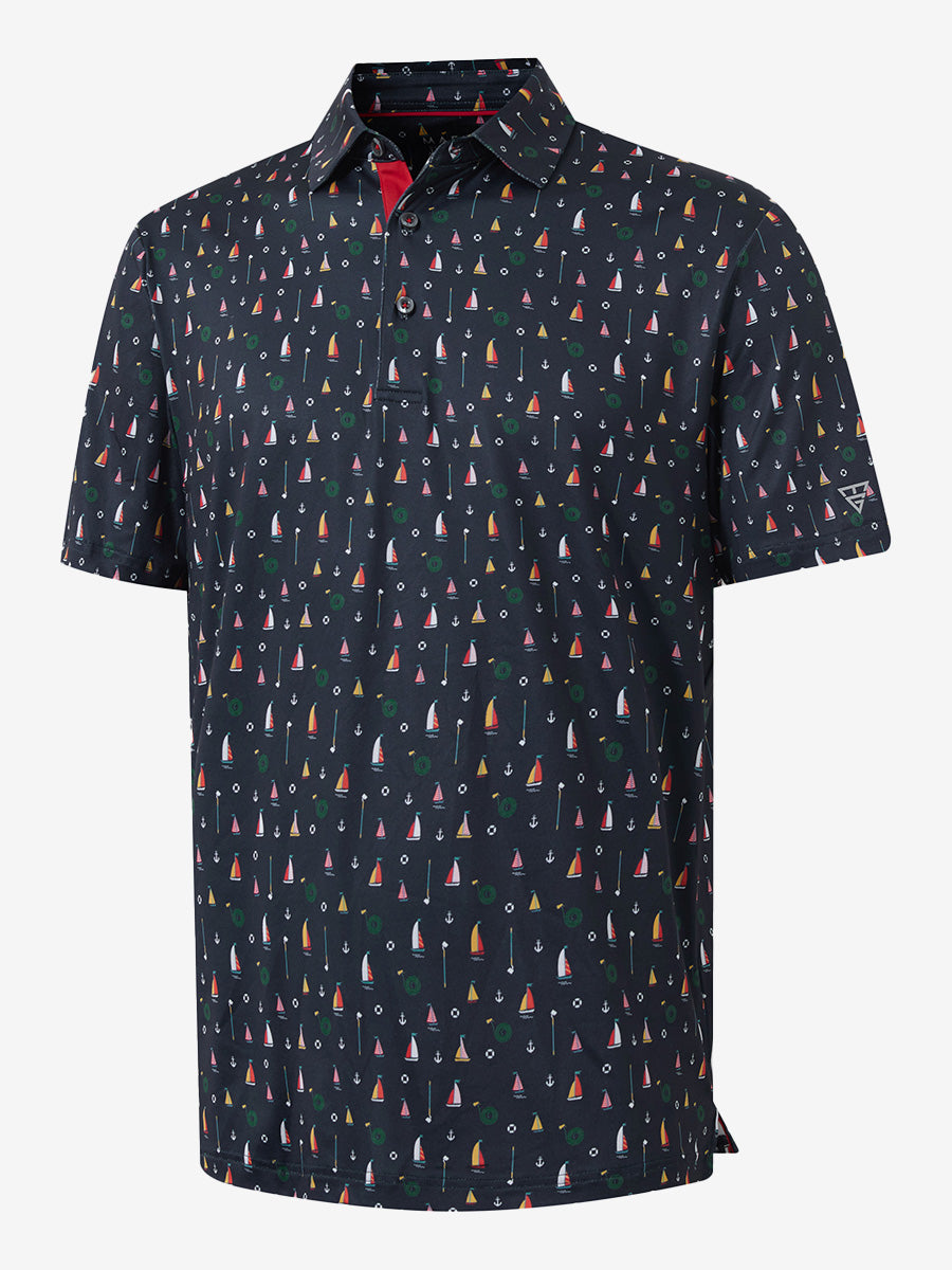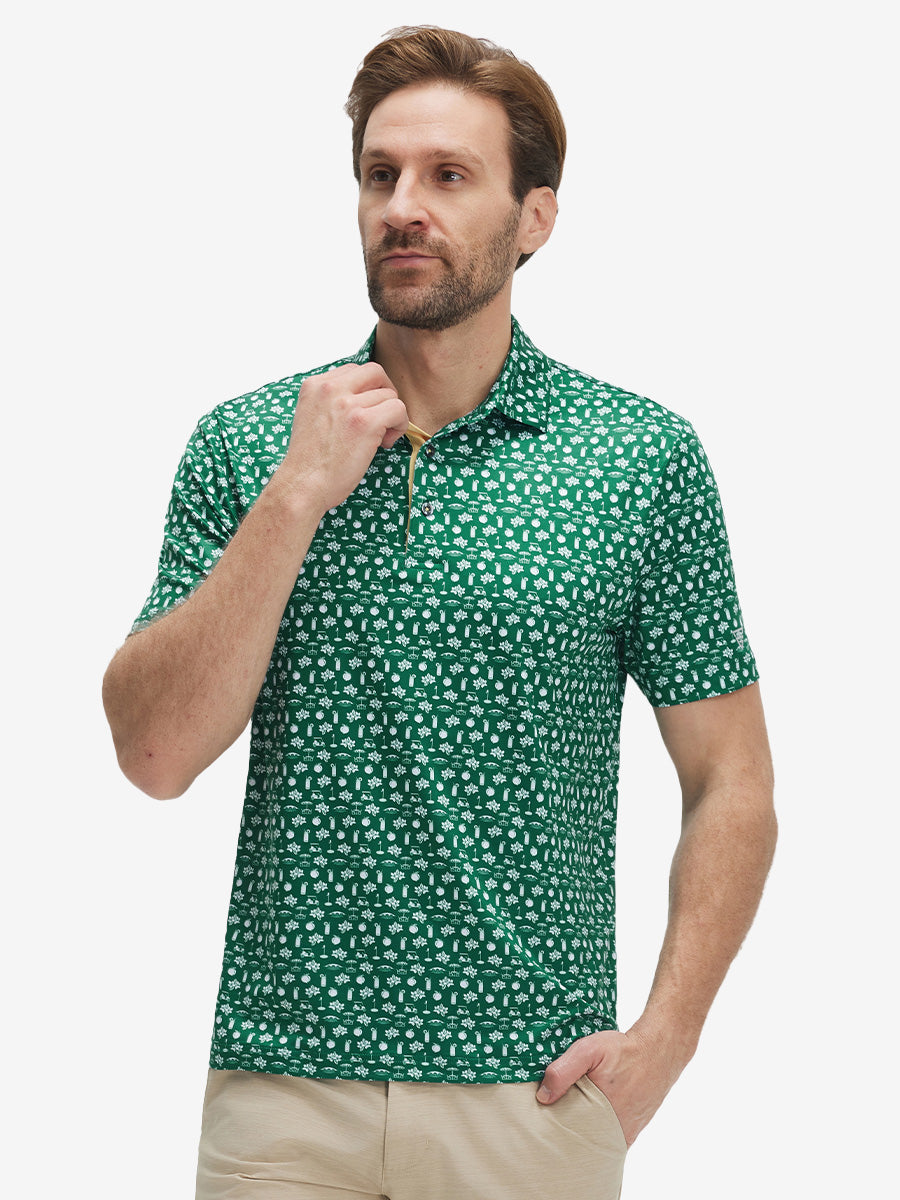 4 Way Stretch Print Collared Polo Shirts