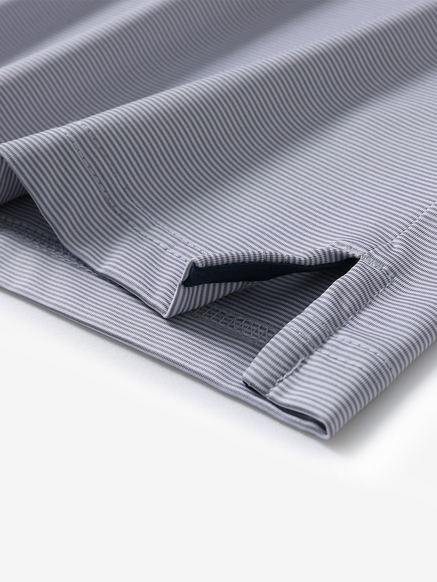 Elevate your style with our 'Long Sleeve Pinstripe Jersey Polo' for men. Lightweight, UPF 50+ protection, and moisture-wicking fabric keep you cool. Resists fading, pilling, and shrinkage. Enjoy freedom of movement and a stylish look with contrast piping details.