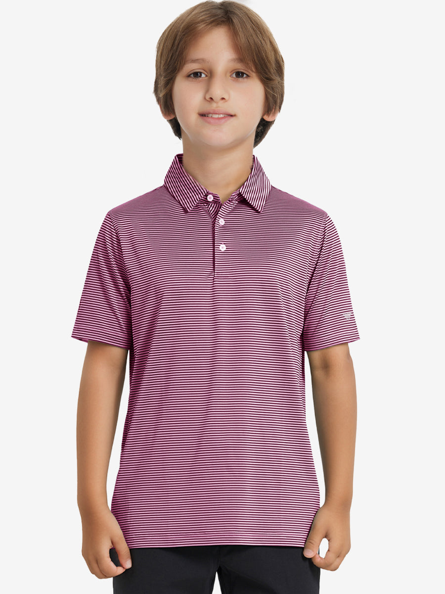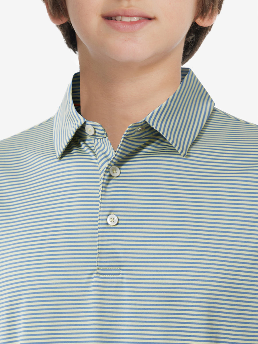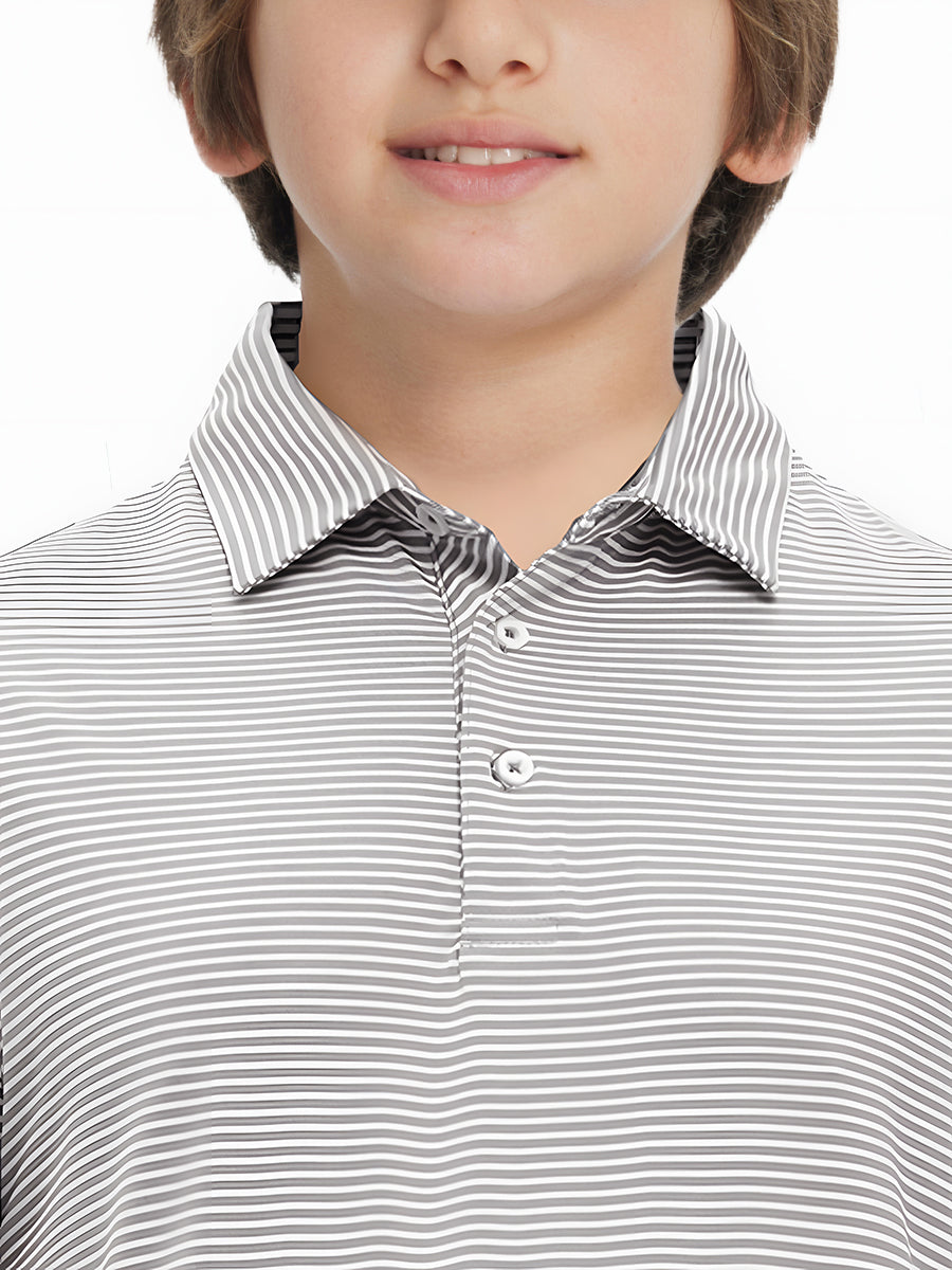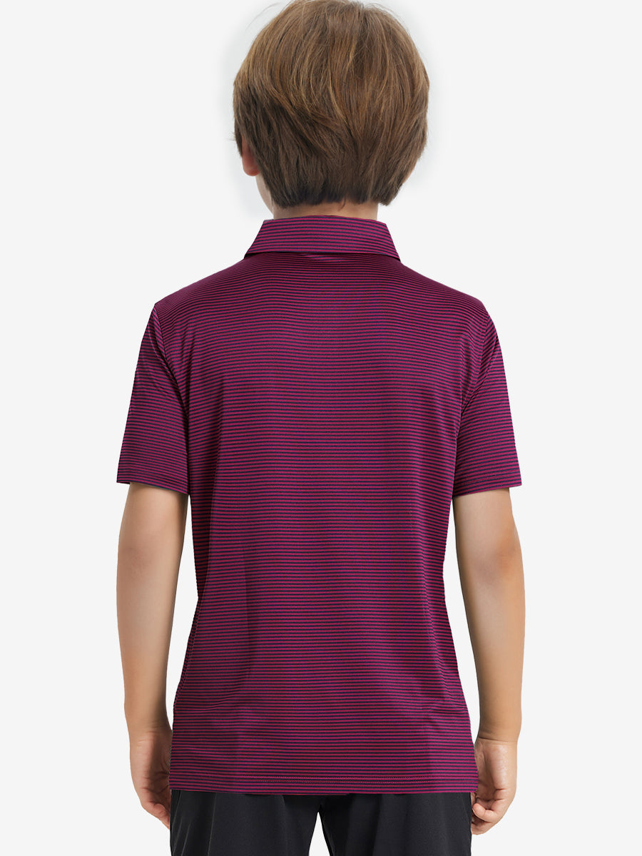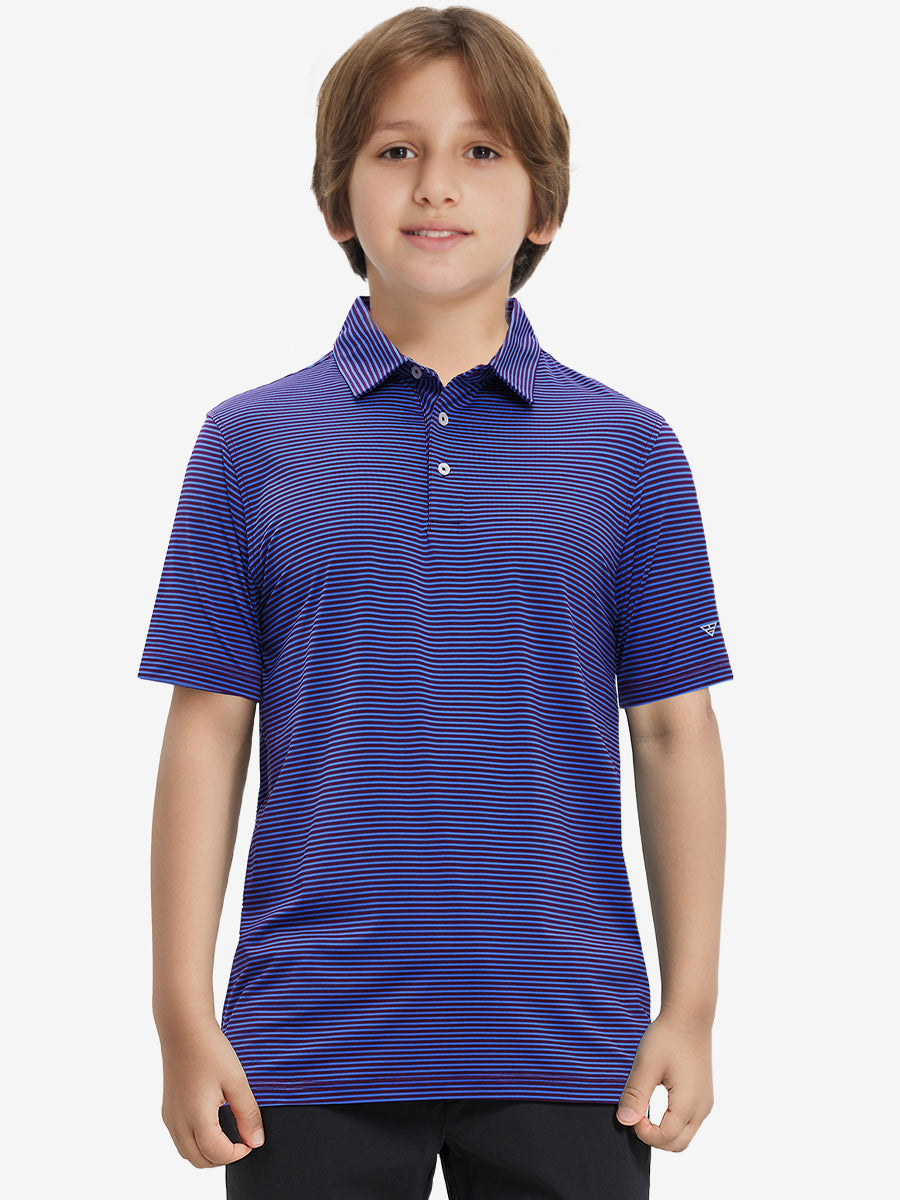 Performance Cooling Polo - Youth crafted from polyester spandex striped jersey. Lightweight, moisture-wicking, quick-drying, UPF 50+, soft hand-feel, 4-way stretch for comfort and breathability. Special construction ensures a no-curl collar and maintains shape.