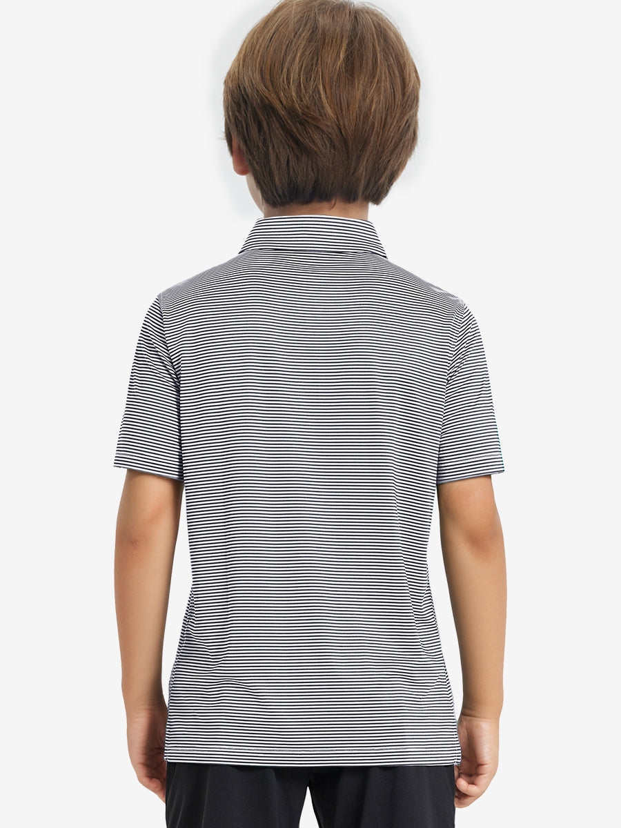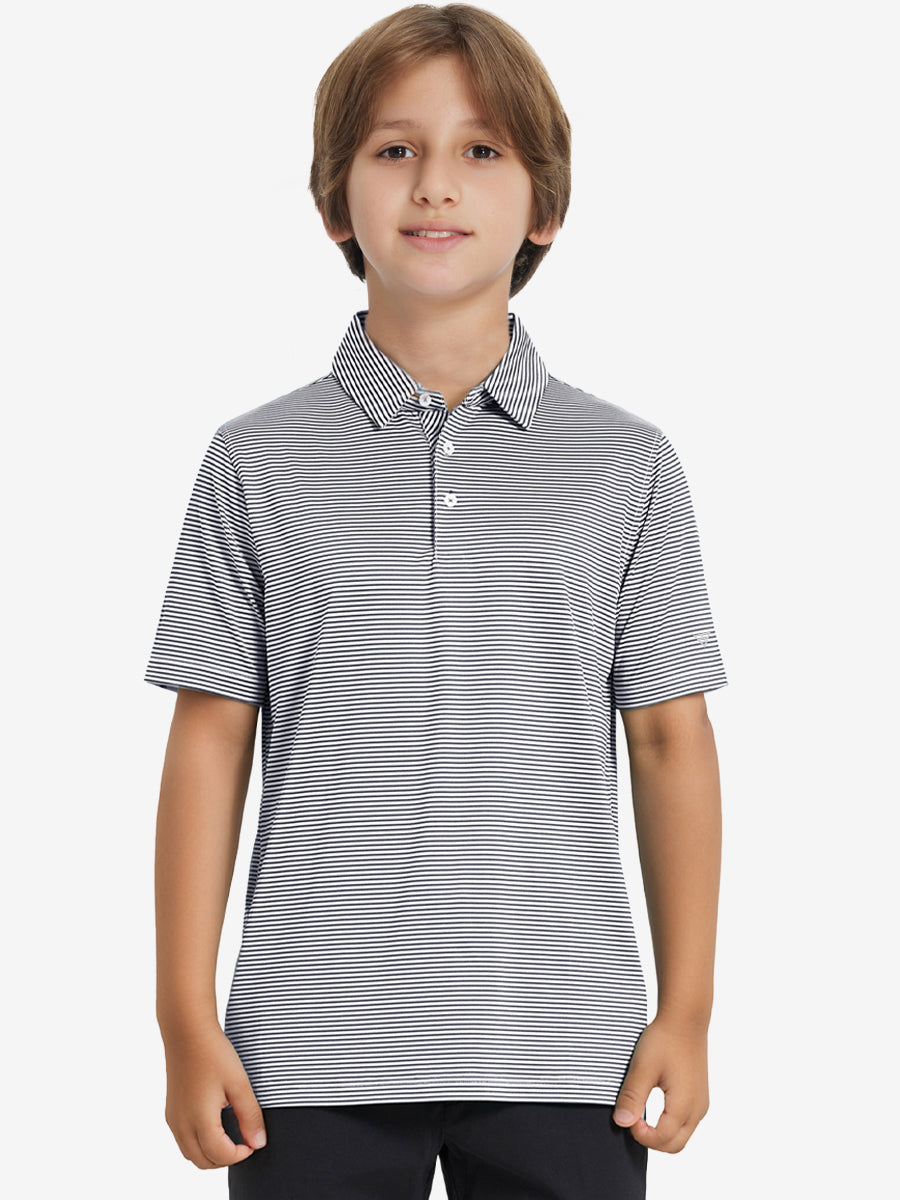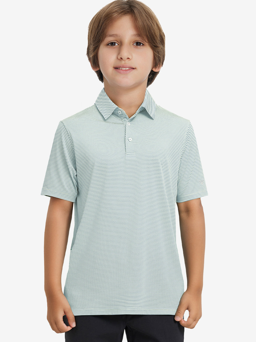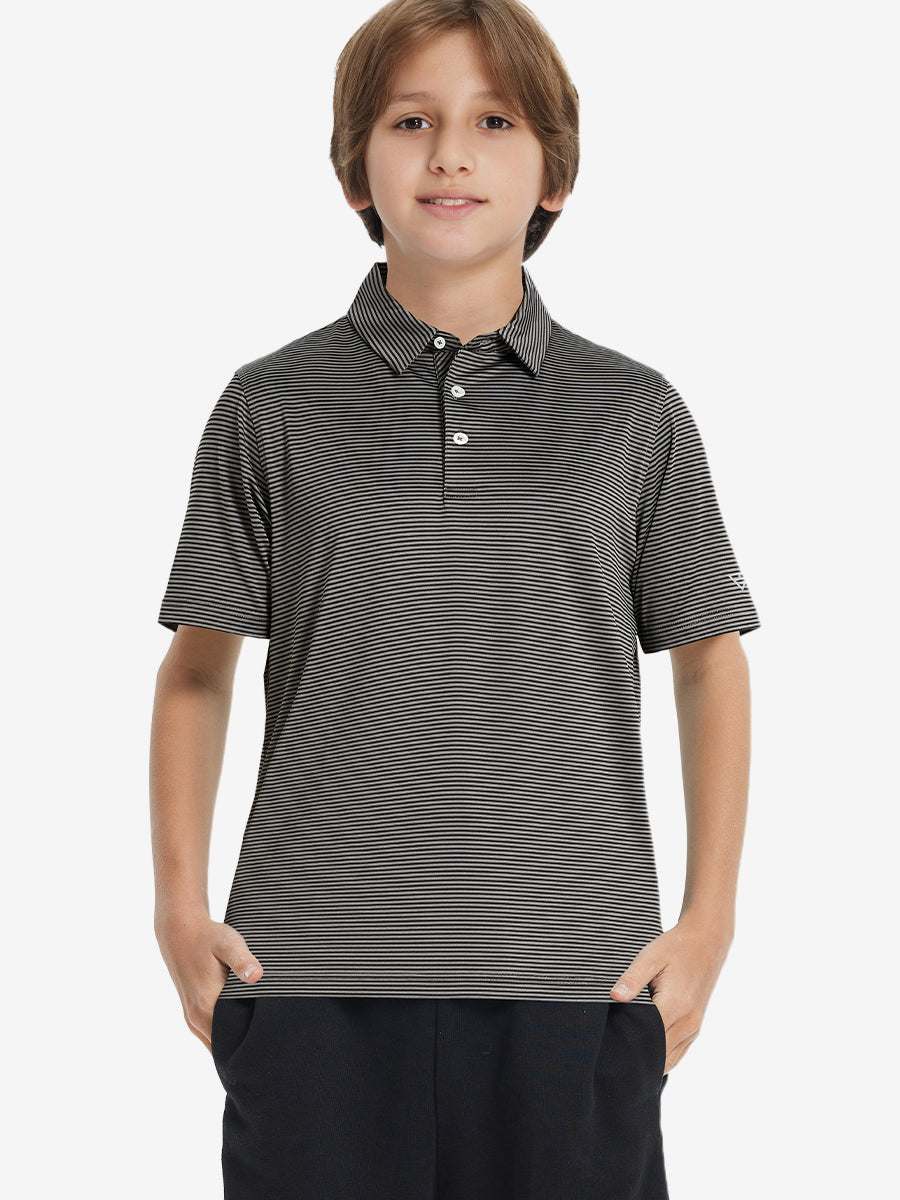 Performance Cooling Polo - Youth crafted from polyester spandex striped jersey. Lightweight, moisture-wicking, quick-drying, UPF 50+, soft hand-feel, 4-way stretch for comfort and breathability. Special construction ensures a no-curl collar and maintains shape.