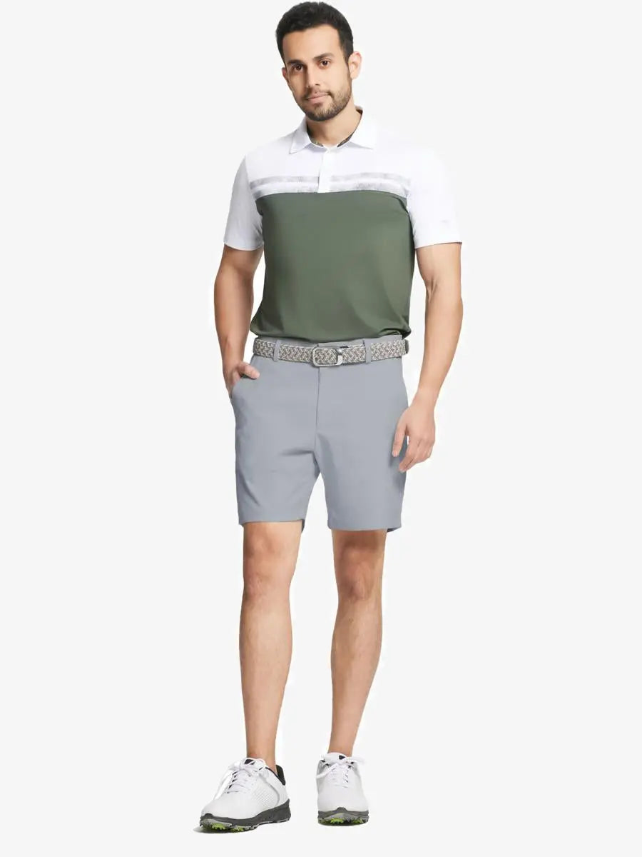 Elevate your game with our Water Resistant Golf Shorts for men. Crafted from premium polyester, these lightweight shorts offer moisture-wicking properties, easy care, and UPF50+ sun protection. Designed for comfort and flexibility, they keep you cool and allow a full range of motion. The secure closure with buttons and a zipper fly ensures a perfect fit, perfect for a flawless golfing experience.