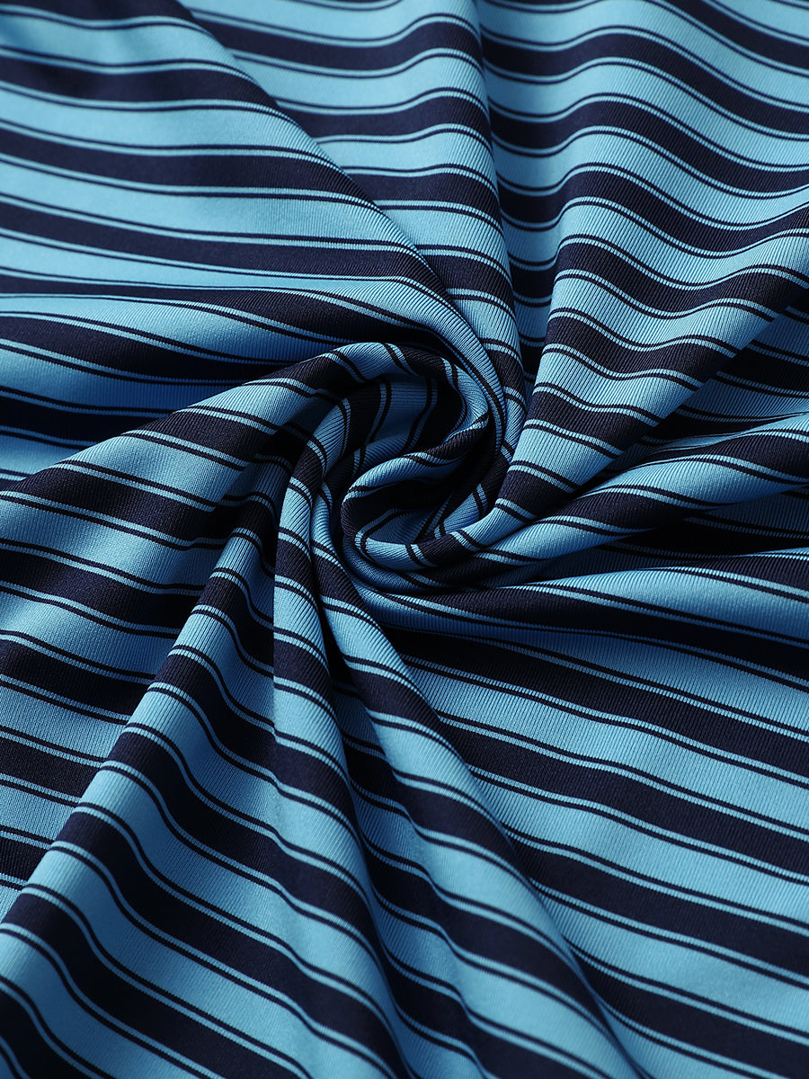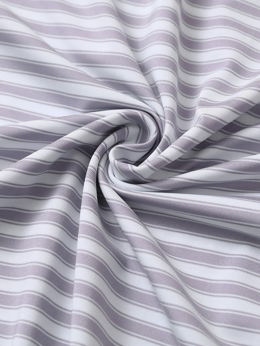Introducing the "Yarn Dyed Stripe Polo" for men. Experience a soft hand-feel, lightweight design, and UPF 50+ protection for ultimate comfort in hot weather. These casual polo shirts offer breathability, quick-dry properties, and four-way stretch functionality for coolness, dryness, and unrestricted movement on and off the golf course.